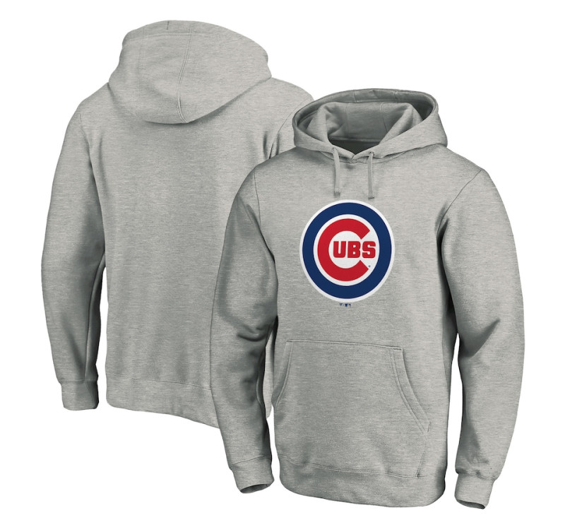 Adult Men's Chicago Cubs Official Logo Fitted Pullover baseball Hoodie - Heather Gray