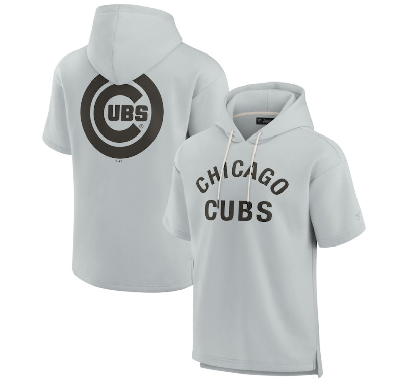 Adult Men's Chicago Cubs Signature Super Soft Fleece Short Sleeve baseball Hoodie - Gray