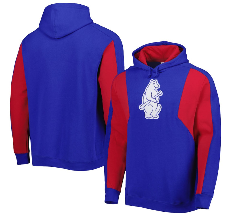 Adult Men's Chicago Cubs Mitchell & Ness Colorblocked Fleece Pullover baseball Hoodie - Royal/Red