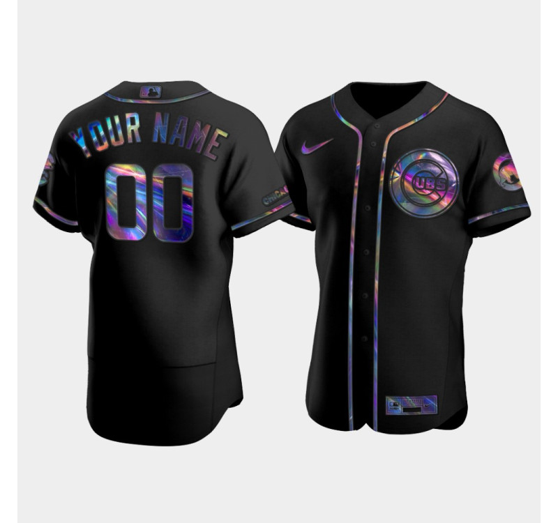 Men's Chicago Cubs Custom Black Iridescent Logo Authentic Holographic Limited Jersey
