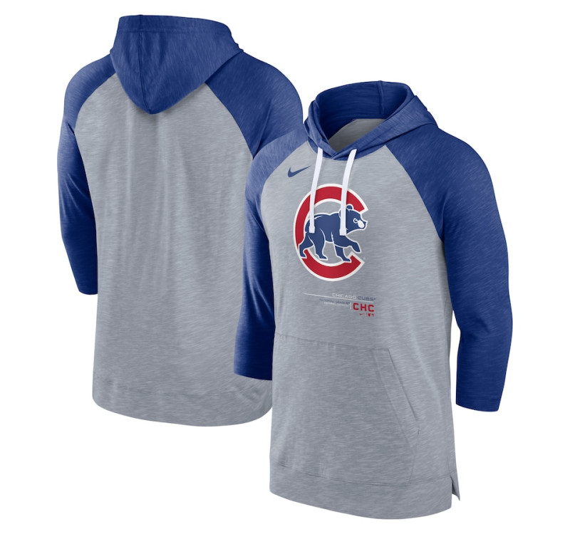 Adult Men's Chicago Cubs Baseball Raglan 3/4-Sleeve Pullover baseball Hoodie - Heather Gray/Heather Royal