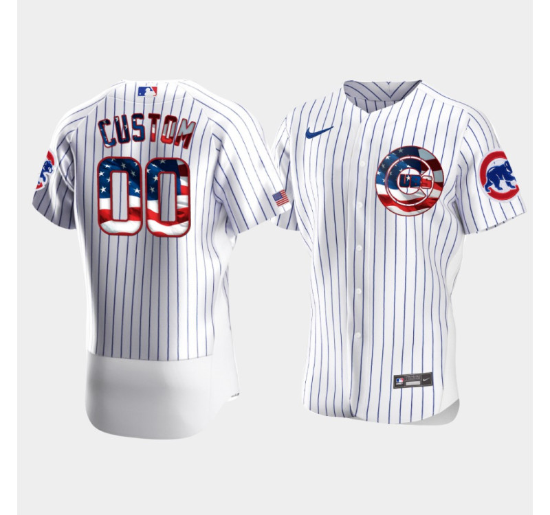 Men's Chicago Cubs #00 Custom White 4th of July 2020 Stars & Stripes Jersey