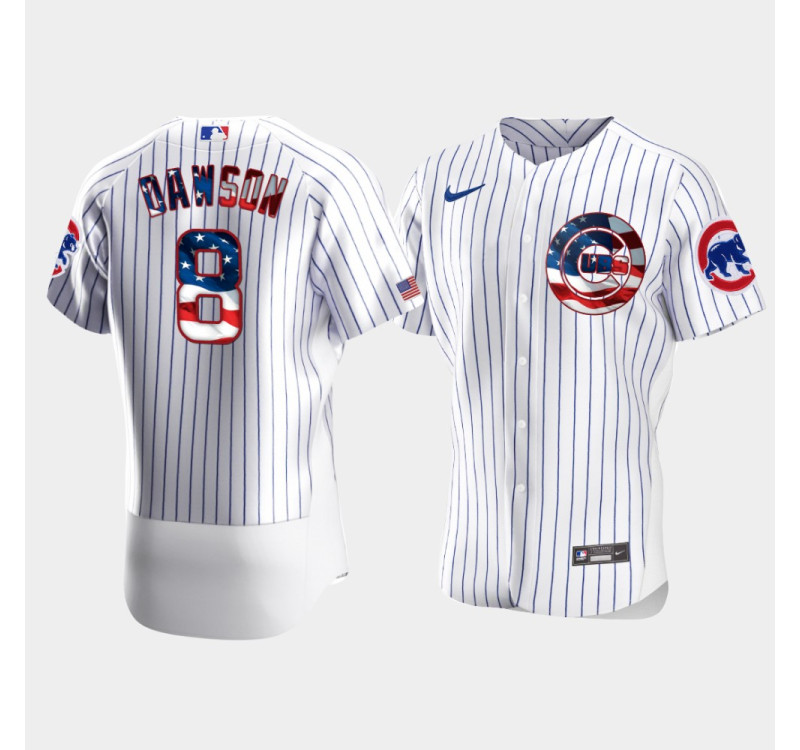 Men's Chicago Cubs #8 Andre Dawson White 4th of July 2020 Stars & Stripes Jersey