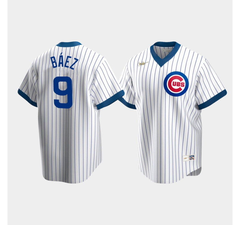Men's Chicago Cubs #9 Javier Baez Cooperstown Collection Home Nike White Jersey