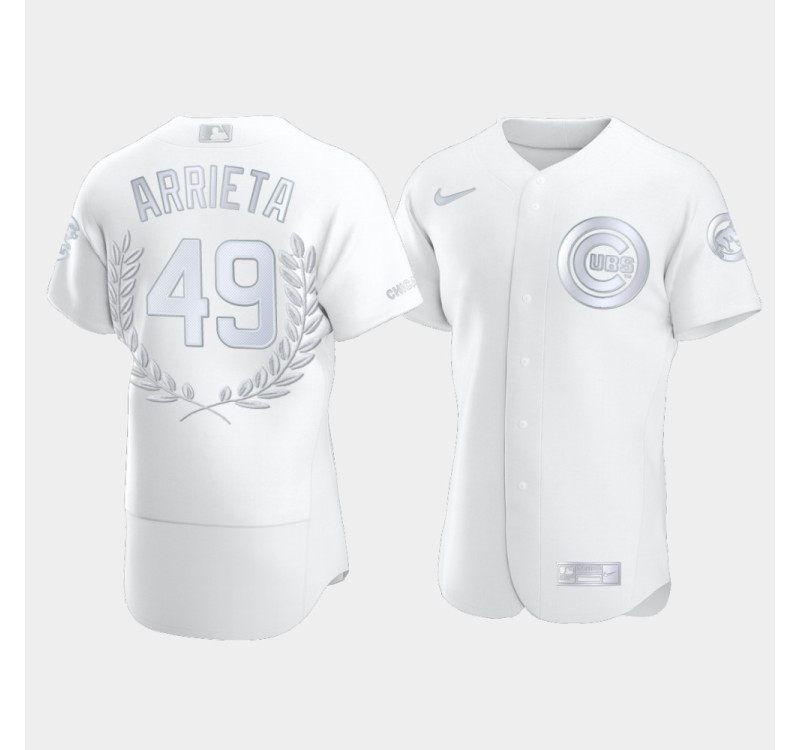 • Men's Chicago Cubs Jake Arrieta #49 White Award Collection NL Cy Young Jersey