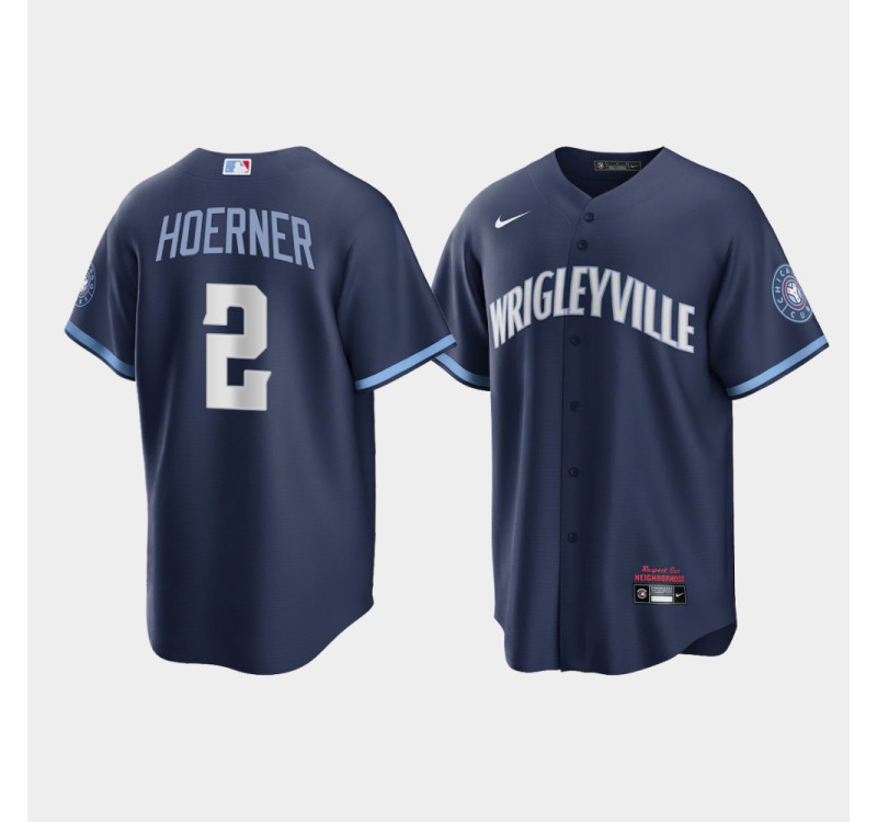 • Men's Chicago Cubs Nico Hoerner #2 Navy 2021 City Connect Replica Jersey