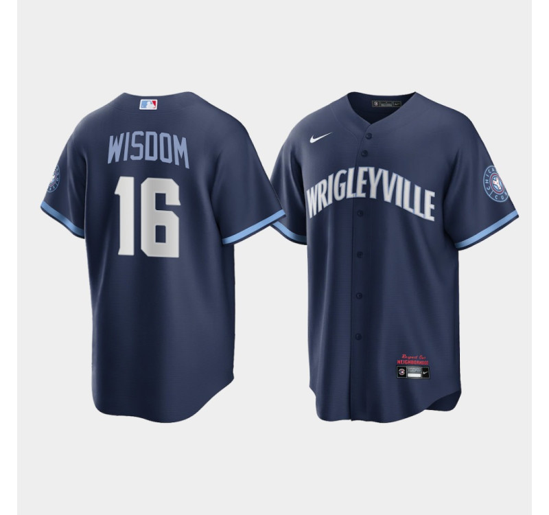 Men's Chicago Cubs Patrick Wisdom #16 Navy 2021 City Connect Replica Jersey