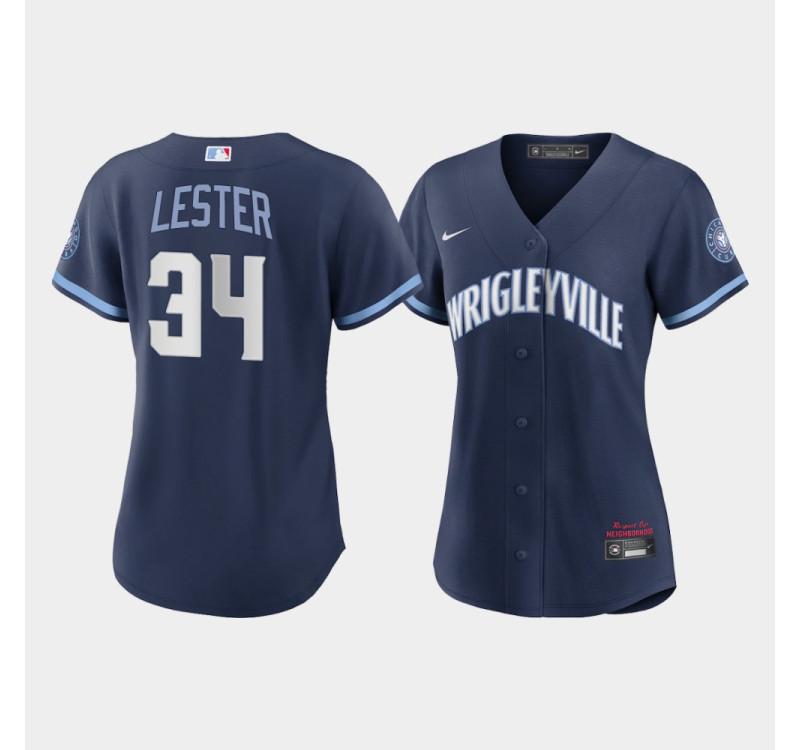 Women's Chicago Cubs Jon Lester #34 Navy 2021 City Connect Replica Jersey