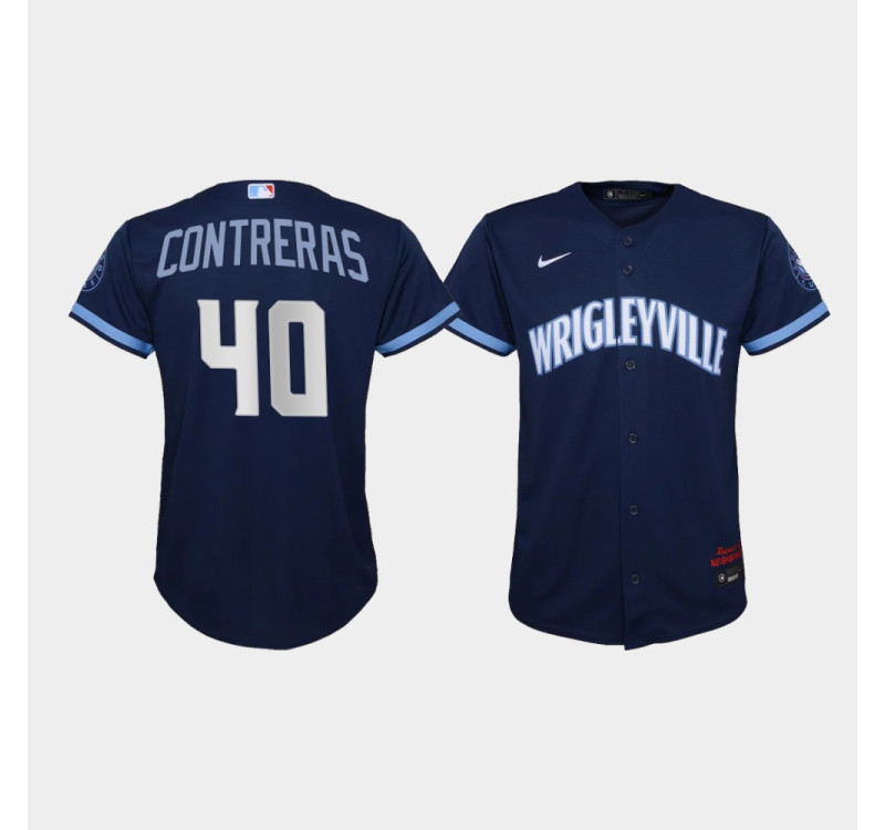 Youth Chicago Cubs Willson Contreras #40 Navy 2021 City Connect Replica Jersey