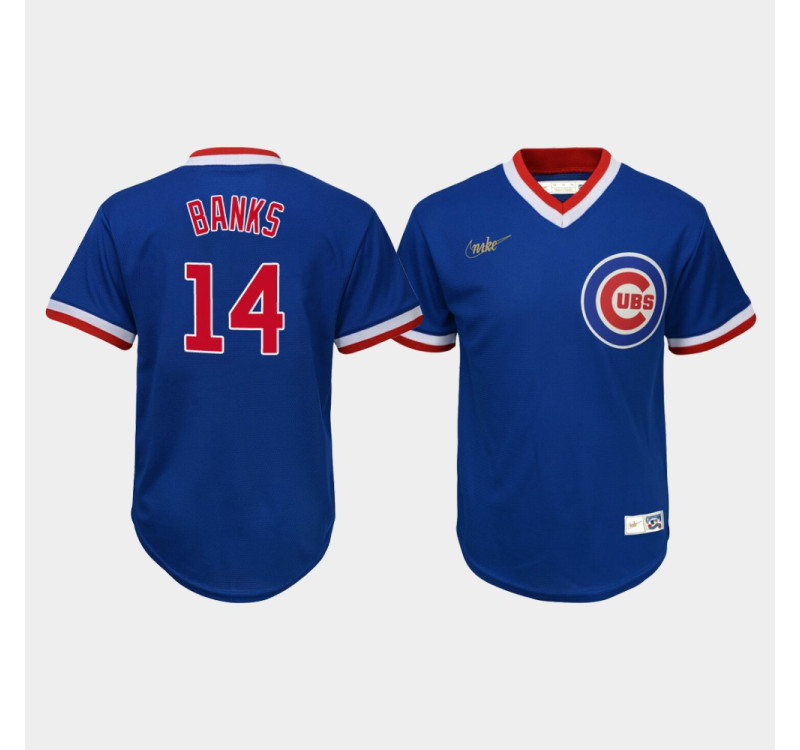 Youth Chicago Cubs #14 Ernie Banks Cooperstown Collection Road Nike Royal Jersey
