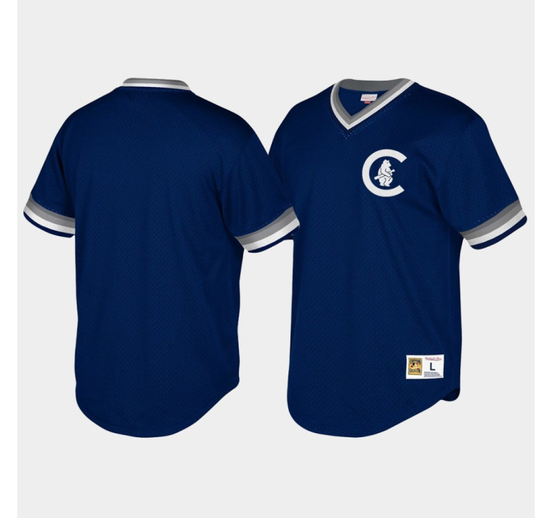 Youth Chicago Cubs Cooperstown Collection Mesh Wordmark V-Neck Navy Mitchell & Ness Jersey