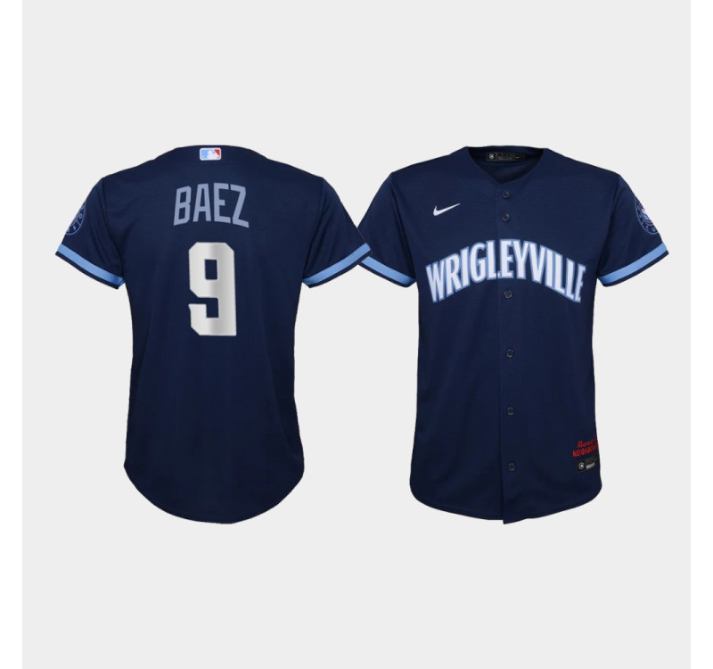 Youth Chicago Cubs Javier Baez #9 Navy 2021 City Connect Replica Jersey