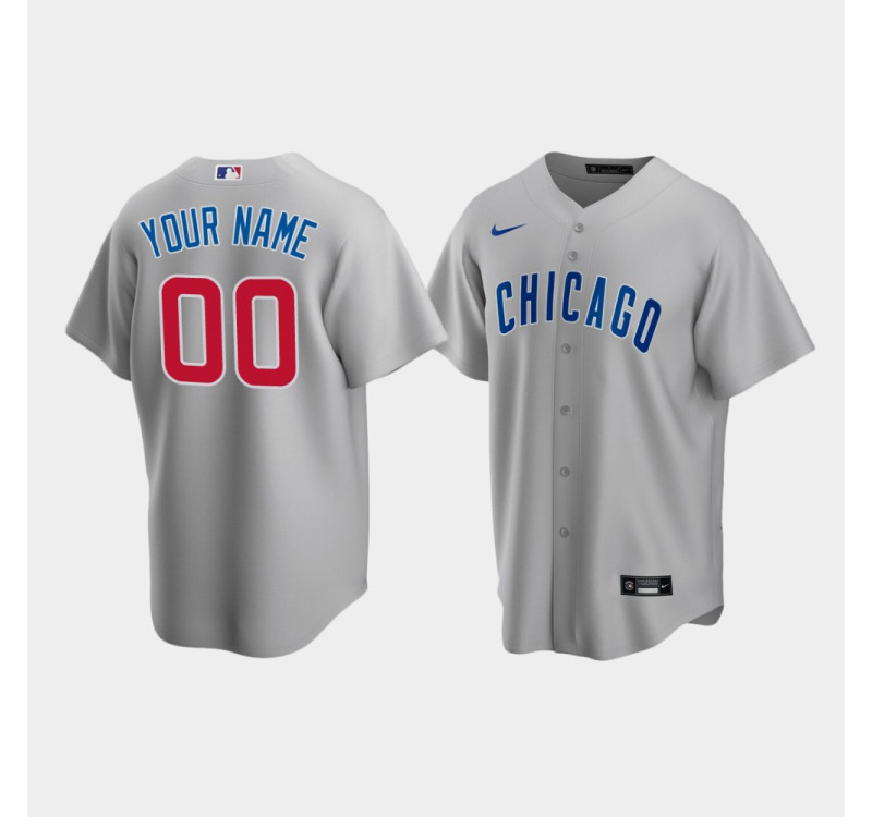• Men's Chicago Cubs #00 Custom Gray Replica Road Jersey